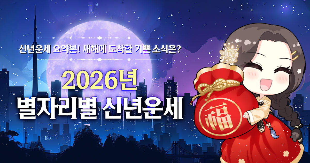 🌟 2026년 새해가 밝아오고 있어요! 🌟 신년을 맞이하여 당신이 받을 복(福)은 뭘까요? 주머니를 풍요롭게 채워줄 재물복? 💵 문제를 척척 해결해줄 귀인이 따르는 인복? 😇 📣 점성술사 릴리가 태양 별자리와 목성 및 명왕성의 운행을 보고 2026년 신년운세를 들려드릴게요. 📣 보너스로 올해 당신이 얻을 행운과 주의사항도 알려줄게요!