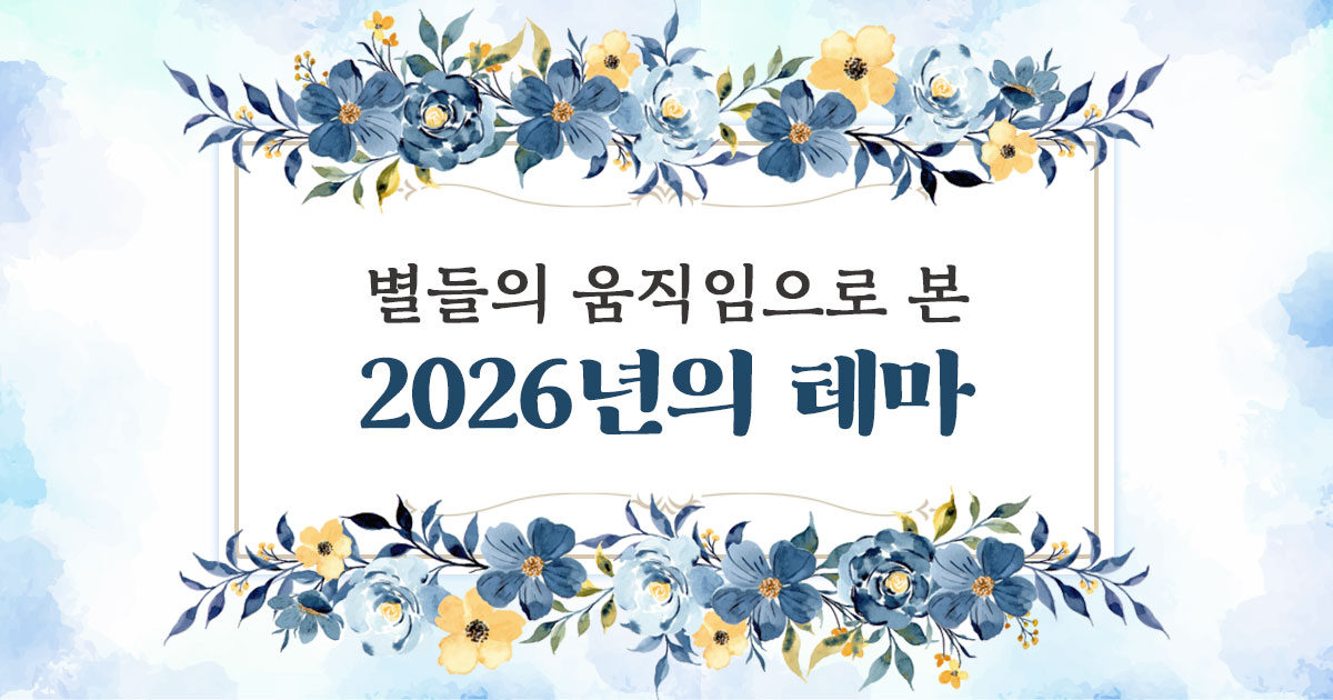 ### 별들의 움직임으로 보는 당신의 2026년 테마! 일곱 행성 중 목성, 토성의 움직임을 중심으로 보는 2026년의 테마! 2026년의 별들이 그려주고 비춰주는 당신의 모습입니다. 당신의 2026년이 별빛으로 가득하길 바랄게요. 2026년 새해를 알차게 계획하고 대비하는 방법을 지금 확인해보세요.