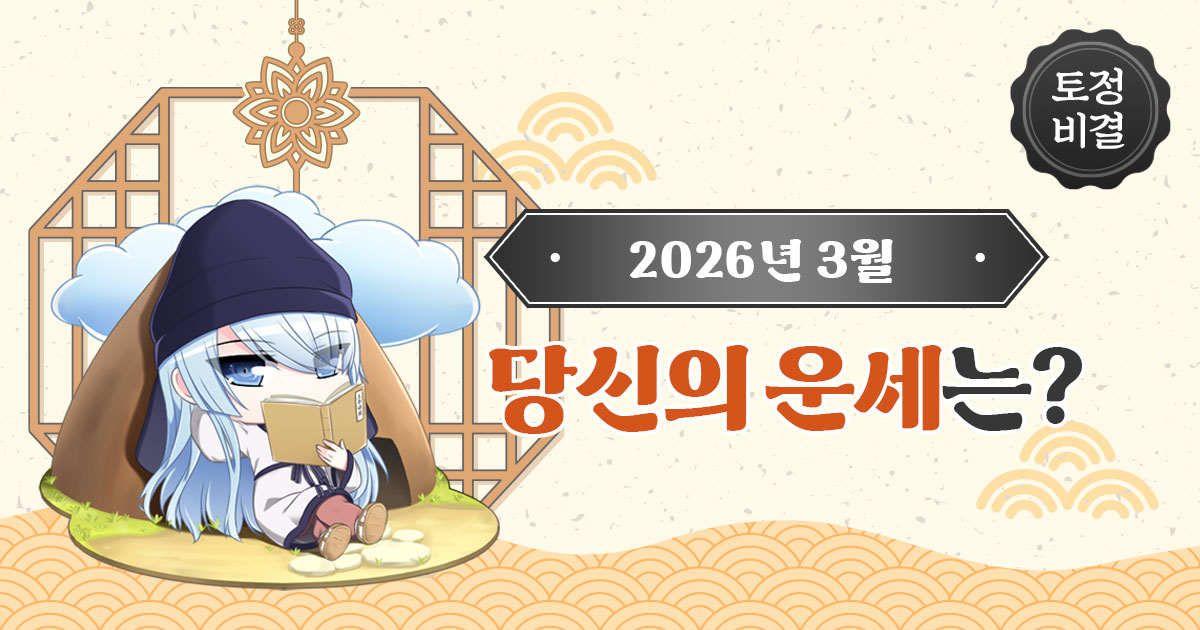 포스텔러의 훈남, 토정 이지함 샘이 알려주는 2026년 3월 운세! 양력으로 2026년 3월 19일 ~ 2026년 4월 16일에 해당합니다. 시크한 이지함 선생님의 토정비결 총운과 재물운, 애정운, 학업운, 건강운 등이 궁금하다면 프리미엄 토정비결을 찾아주세요!